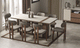 الطاولة مزودة بدرجين تخزين بتنجيد مخمل أنيق