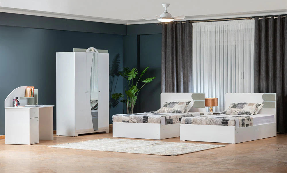 Components : 2 Beds +Wardrobe +Desk + Commode