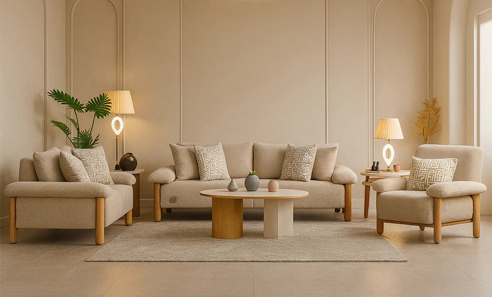 (2) 3 seaters sofa +armchair +pouf