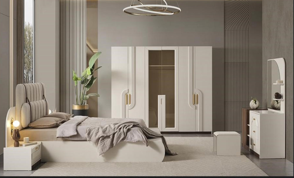 Components : 1 Bed + 2 separate Wardrobes +Dresser with mirror + 2 Commodes
